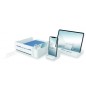 - 2 tăvițe multifuncționale, stivuibile și glisante cu fanta pentru încărcător.